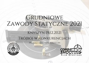 Grudniowe Zawody Statyczne 2021 – formuła zawodów zawiera się w trzech konkurencjach (pistolet, karabin i strzelba). Karabin centralnego zapłonu – 25 m Pistolet centralnego zapłonu – 15 m Strzelba – 15 m – Wynik sumowany do klasyfikacji ogólnej – Regulamin zawodów dostępny na stronie www.combatshooting.pl – Zawody strzeleckie wpisane do kalendarza WZSS co sprawia, że…