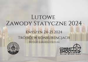 Lutowe Zawody Statyczne 2024 24 lutego – pierwsze starty o godz. 12.00 do 16.00 25 lutego – zaczynamy tradycyjnie o 10.00 do 15.20 – formuła zawodów zawiera się w trzech konkurencjach (pistolet, karabin i strzelba). Karabin centralnego zapłonu – 25 m Pistolet centralnego zapłonu – 15 m Strzelba – 15 m – Wynik sumowany…