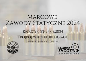 Marcowe Zawody Statyczne 2024 23 marca – pierwsze starty o godz. 12.00 do 16.00 24 marca – zaczynamy tradycyjnie o 10.00 do 15.20 – formuła zawodów zawiera się w trzech konkurencjach (pistolet, karabin i strzelba). Karabin centralnego zapłonu – 25 m Pistolet centralnego zapłonu – 15 m Strzelba – 15 m – Wynik sumowany…
