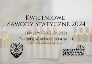 Kwietniowe Zawody Statyczne 2024 20 kwietnia – pierwsze starty o godz. 12.00 do 16.00 21 kwietnia – zaczynamy tradycyjnie o 10.00 do 15.20 – formuła zawodów zawiera się w trzech konkurencjach (pistolet, karabin i strzelba). Karabin centralnego zapłonu – 25 m Pistolet centralnego zapłonu – 15 m Strzelba – 15 m – Wynik sumowany…
