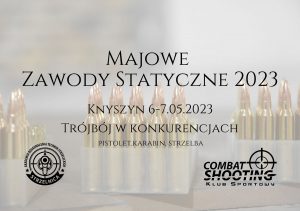 Majowe Zawody Statyczne 2023 6 maj – pierwsze starty o godz 13.00 do 16.00 7 maj – zaczynamy tradycyjnie o 10.00 do 15.20 – formuła zawodów zawiera się w trzech konkurencjach (pistolet, karabin i strzelba). Karabin centralnego zapłonu – 25 m Pistolet centralnego zapłonu – 15 m Strzelba – 15 m – Wynik sumowany do…