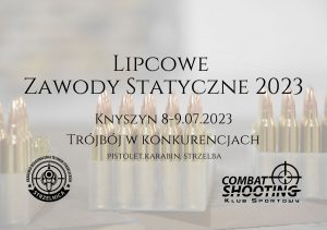 Lipcowe Zawody Statyczne 2023 8 lipiec – pierwsze starty o godz 13.00 do 16.00 9 lipiec – zaczynamy tradycyjnie o 10.00 do 15.20 – formuła zawodów zawiera się w trzech konkurencjach (pistolet, karabin i strzelba). Karabin centralnego zapłonu – 25 m Pistolet centralnego zapłonu – 15 m Strzelba – 15 m – Wynik sumowany do…